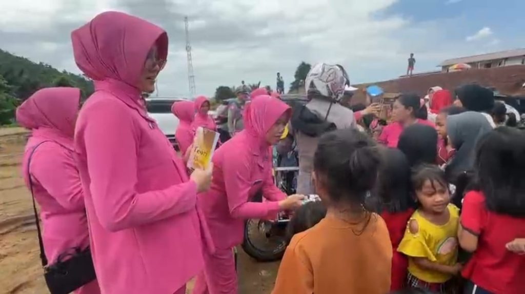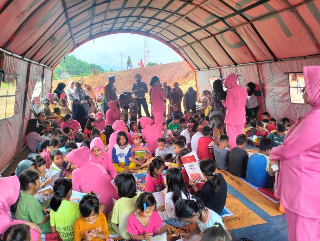 Bhayangkari Cabang Konawe Utara Gelar Trauma Healing dan Berikan Bantuan Anak-Anak Korban Banjir