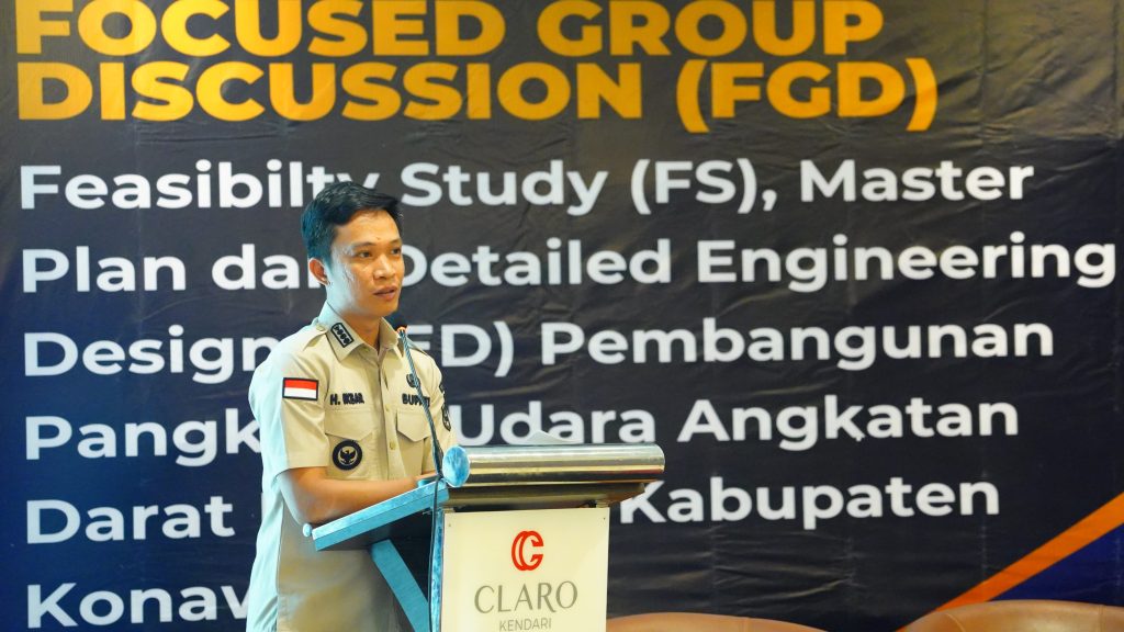 FGD yang berlangsung di Aula Legend Hotel Claro Kendari ini dihadiri oleh Bupati Konawe Utara H. Ikbar, S.H., M.H., Wakil Bupati H. Abuhaera, S.Sos., M.Si., Komandan Puspenerbad Mayjen TNI Zainuddin, Gubernur Sultra yang diwakili oleh Kepala Dinas Perhubungan Prov. Sultra, jajaran FORKOPIMDA Provinsi Sultra, FORKOPIMDA Konawe Utara, Ketua Tim Swakelola Universitas Hasanuddin Prof. Ir. Sakti Aji Adisasmita, M.Si., M.Eng., SC., Ph.D., para Asisten, Staf Ahli, serta sejumlah Kepala OPD terkait lingkup Pemda Konawe Utara.