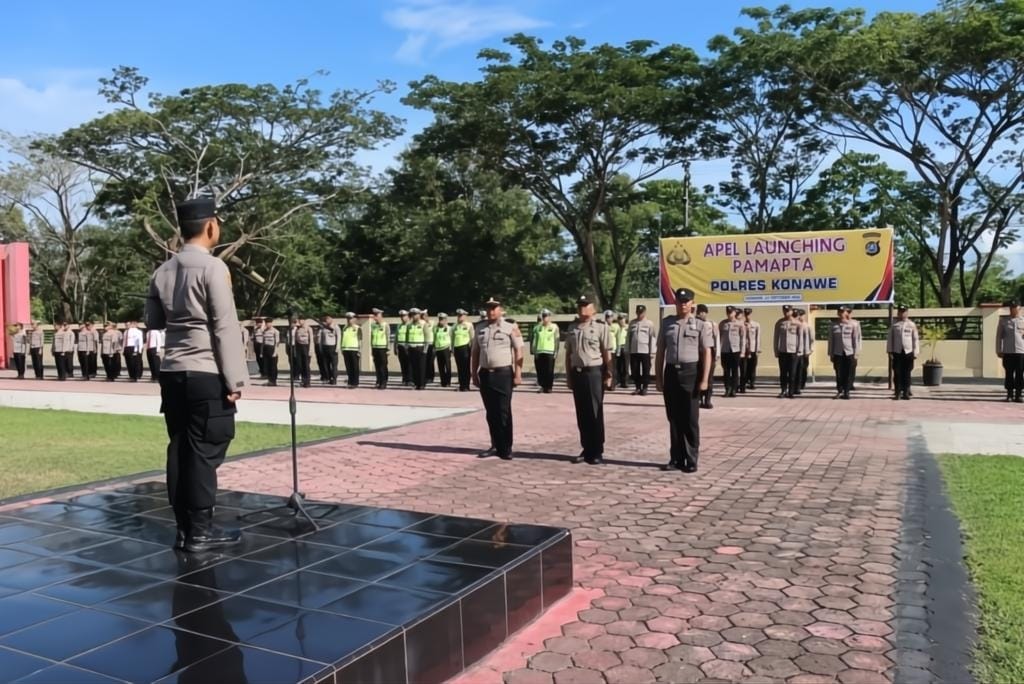 Apel peluncuran dipimpin langsung oleh Kapolres Konawe, AKBP Noer Alam, S.I.K., yang bertindak selaku inspektur apel. Kegiatan ini diikuti seluruh personel Polres Konawe, mulai dari jajaran perwira, pasukan bersenjata, hingga gabungan staf dari Sat Reskrim, Sat Resnarkoba, dan Sat Intelkam.