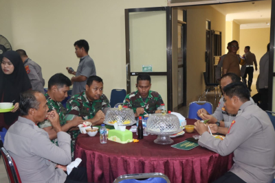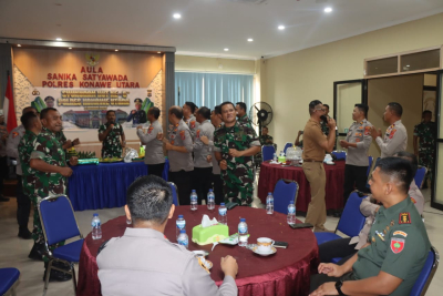 Kedatangan puluhan anggota TNI Kodim 1430 Konut dipimpin Dandim Letkol Kav. Kuswara, S.I.P yang disambut langsung Kapolres AKBP Rico Fernanda, S.H., S.I.K., M.H, Ketua Bhayangkari cabang Konawe utara Ny. Esi Rico Fernanda bersama PJU Polres Konut