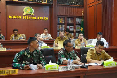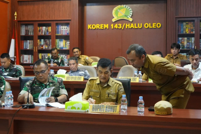 Rapat tersebut dipimpin langsung oleh Komandan Korem 143/Halu Oleo, R. Wahyu Sugiarto, S.I.P., M.Han., serta dihadiri Dandim 1430 Konawe Utara bersama jajaran terkait lainnya. Kehadiran unsur Forkopimda dan perangkat daerah menunjukkan kuatnya komitmen lintas sektor dalam mendukung kelancaran pelaksanaan program TMMD sebagai salah satu program strategis pembangunan berbasis kemanunggalan TNI dan rakyat.