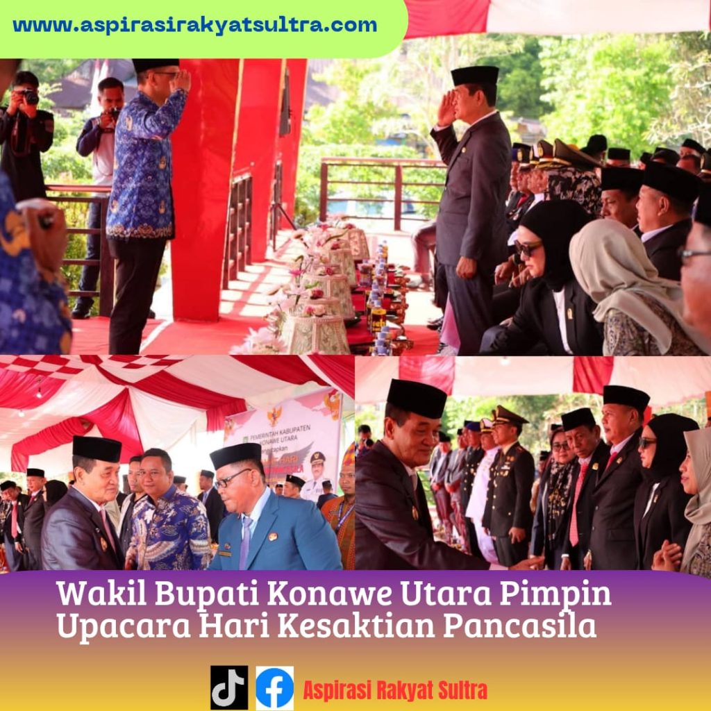 aspirasirakyatsultra.com | Konut – Wakil Bupati Konawe Utara H. Abuhaera, S.Sos., M.Si mewakili Bupati Konawe Utara H. Ikbar, SH., MH memimpin Upacara Peringatan Hari Kesaktian Pancasila Tingkat Kabupaten Konawe Utara (Konut) di Lapangan Upacara Kantor Bupati Konut, Rabu (01/10/2025). Upacara juga turut dihadiri jajaran Staf Ahli, Asisten, Kepala OPD, Forkopimda, Anggota DPRD Konut, Instansi Vertikal, […]