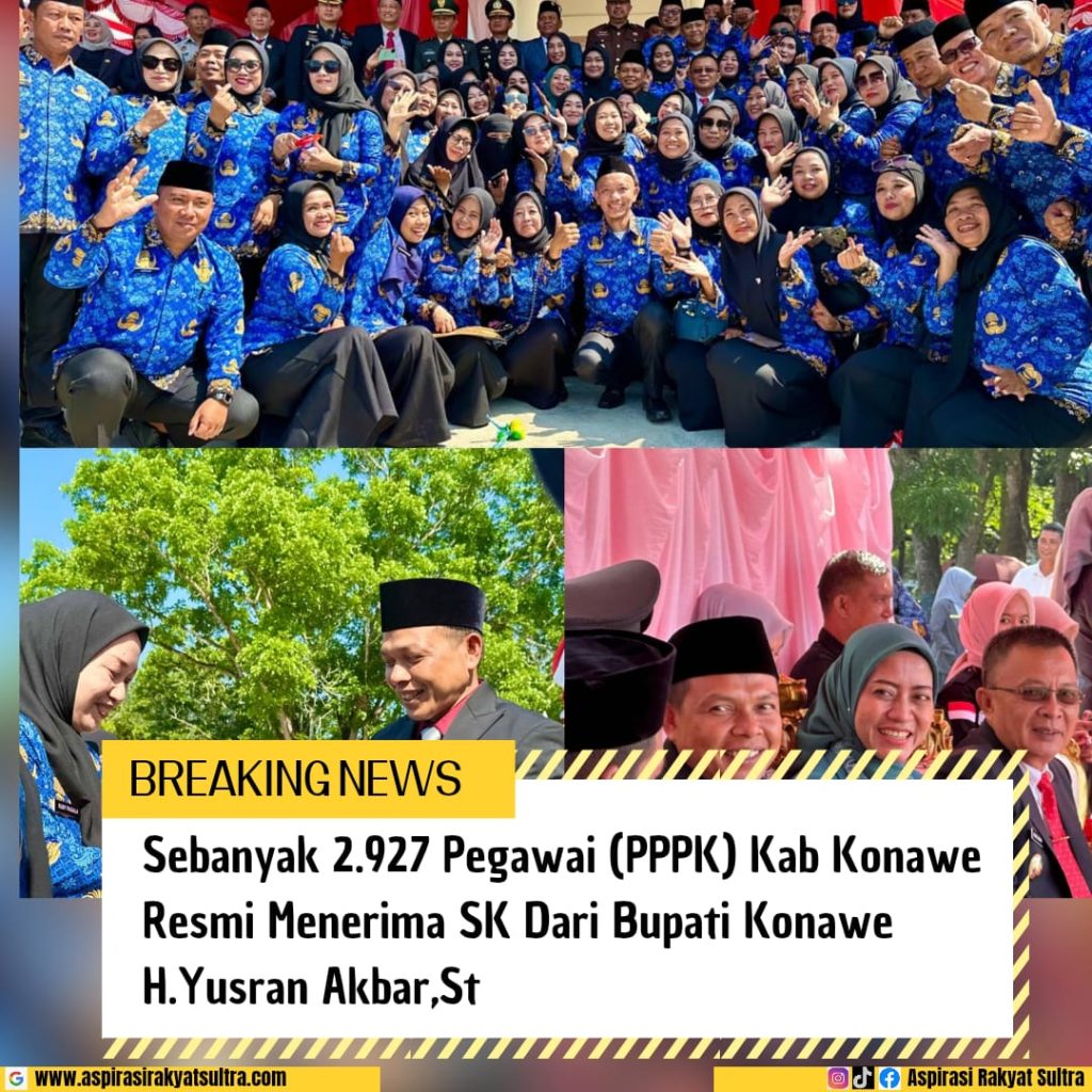 aspirasirakyatsultra.com | Konawe – Sebanyak 2.927 Pegawai Pemerintah dengan Perjanjian Kerja (PPPK) resmi menerima SK pengangkatan dari Bupati Konawe, H. Yusran Akbar, ST. Penyerahan SK ini dirangkaikan dengan upacara peringatan Hari Kesaktian Pancasila, Rabu (1/10/2025). Dalam sambutannya, Bupati Yusran memaparkan perjalanan panjang rekrutmen PPPK di Konawe. Tahun 2022, formasi guru sebanyak 832 orang. Tahun 2023 […]