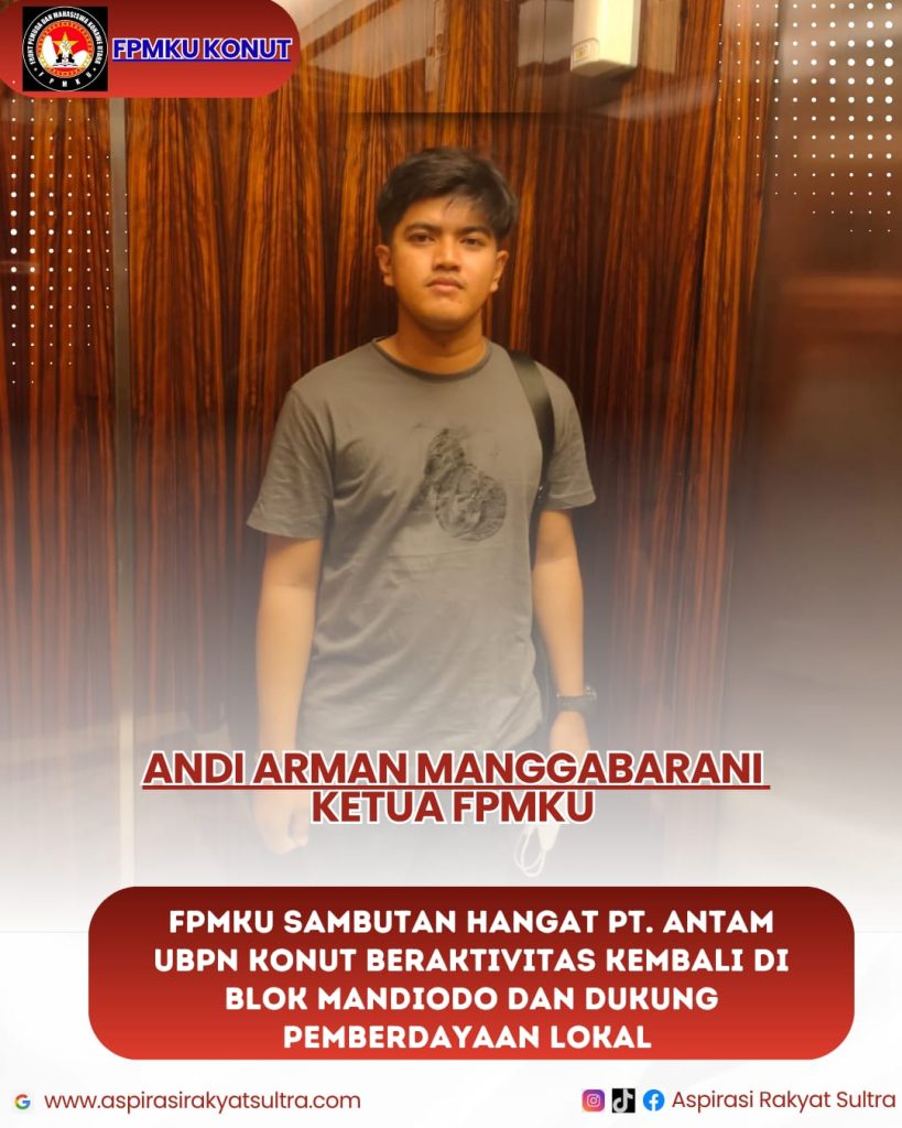aspirasirakyatsultra.com | Konut – Organisasi Masyarakat, melalui ketua distrik kecamatan Molawe Tamalaki Wonua Ndolaki (Tawon), Asrin, menyatakan dukungan penuh terhadap kegiatan pertambangan yang akan dilakukan oleh PT. ANTAM Tbk UBPN KONUT di Blok Mandiodo. Dukungan ini disampaikan sebagai bentuk komitmen untuk mendukung pembangunan ekonomi daerah serta peningkatan kesejahteraan masyarakat setempat. Asrin menjelaskan bahwa dukungan ini […]